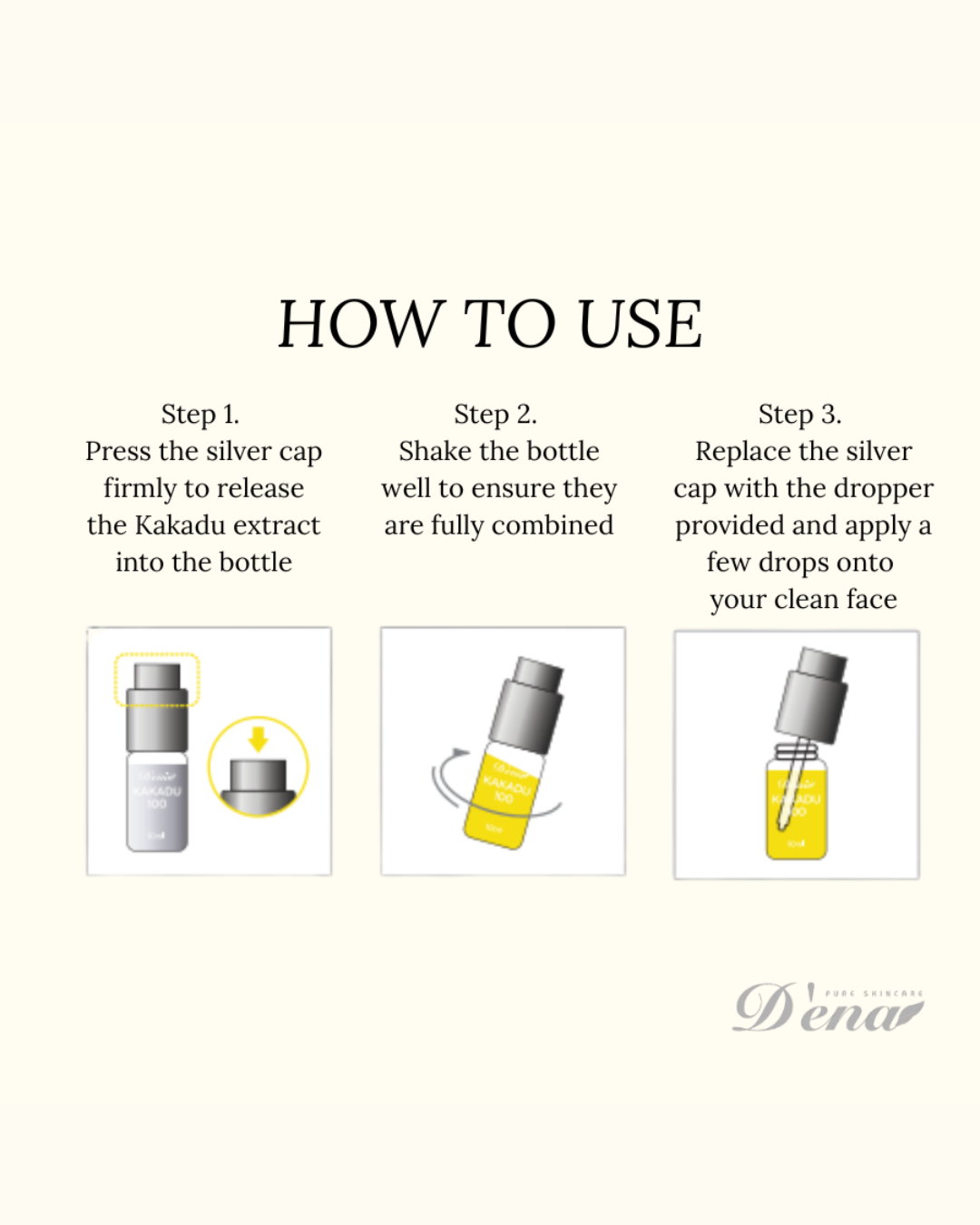 With a firm press of the silver cap, release the Vitamin C rich Kakadu Plum extract into the essence. This innovative One-Click System preserves the formula's vitality, ensuring the ampoule is activated at its peak potency the moment you awaken the extract.